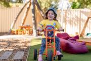 Outside we have a balance of natural and manmade environments which challenge the children and give them every opportunity to let their imaginations run free. With our large outdoor area we have lots of shade and natural and manmade elements including climbing equipment, a veggie patch, bike path and sandpits.