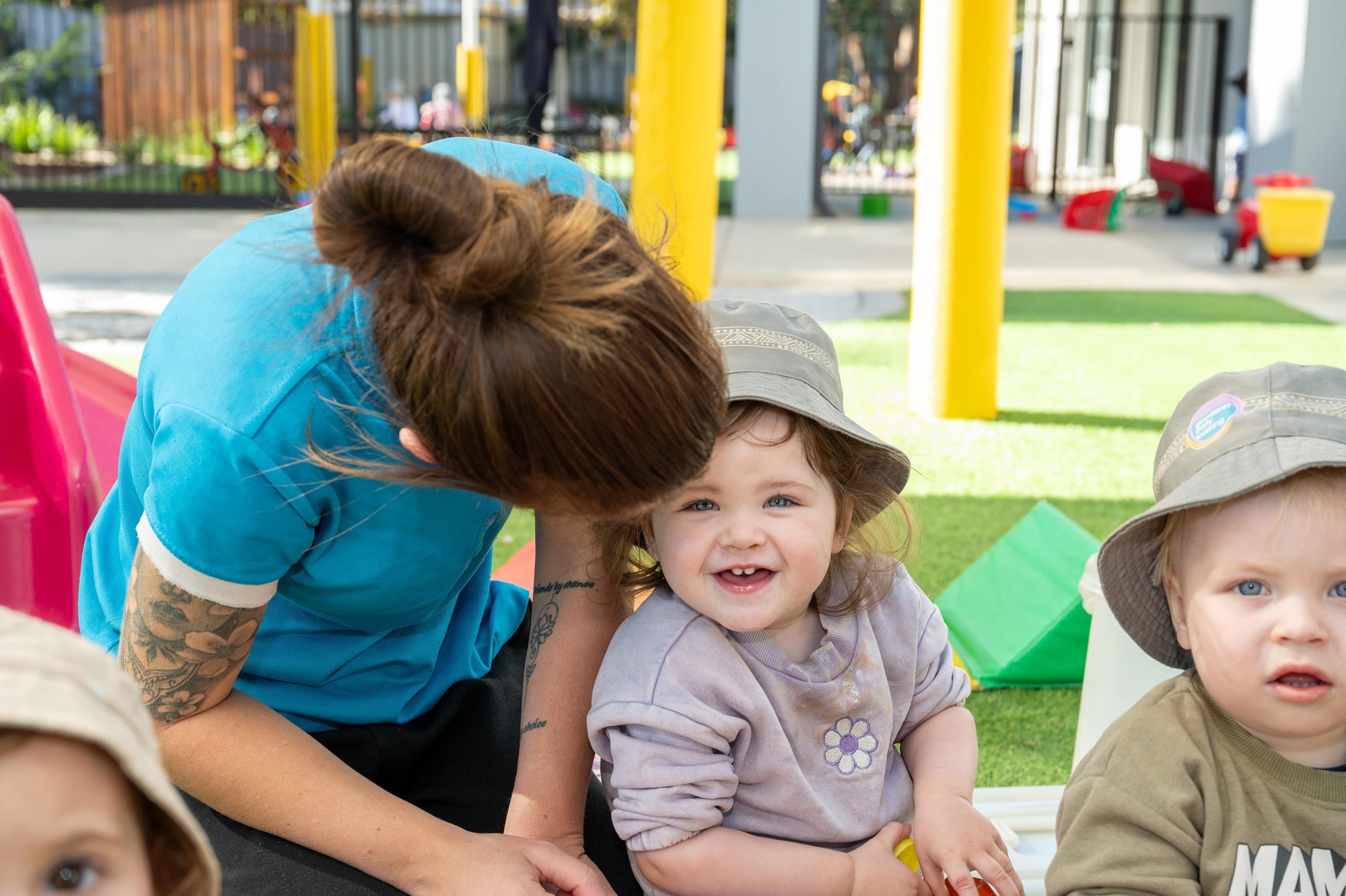 We have just had an amazing complete outdoor upgrade across all three yards which allows our children to explore natural environments, big body movements and have lots of room to run and play!
