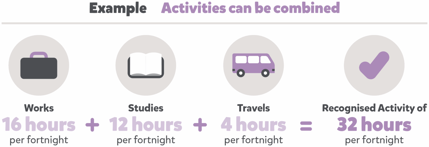 If families are doing multiple activities, these can also be combined to meet the activity test. For example, if you work and study, both activities will be included.
